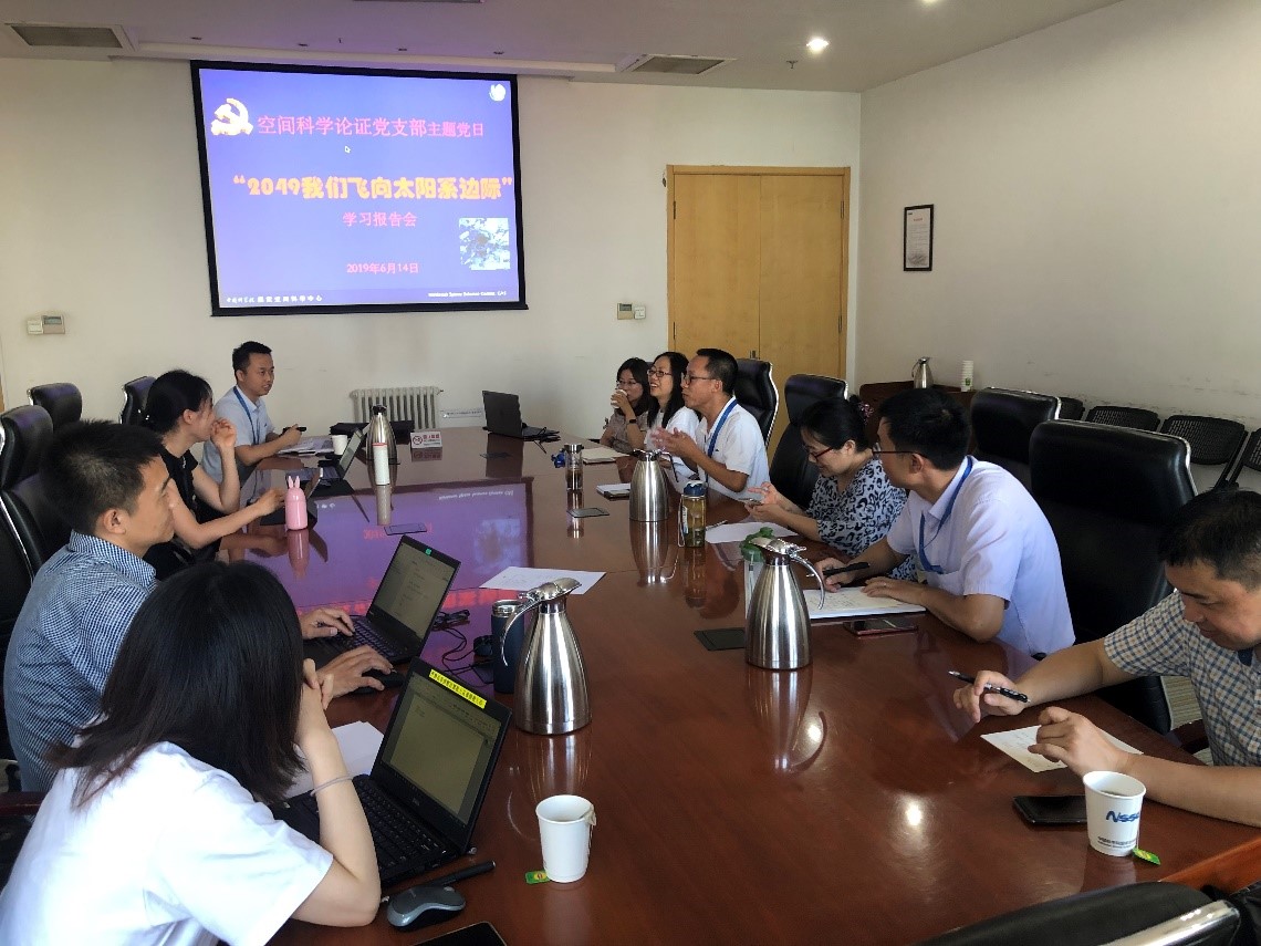 6月14日,空间科学论证党支部组织全体党员、积极分子和群众开展了“2049我们飞向太阳系边际”的主题党日学习。国际合作办主任李晓宇应邀参加了活动。