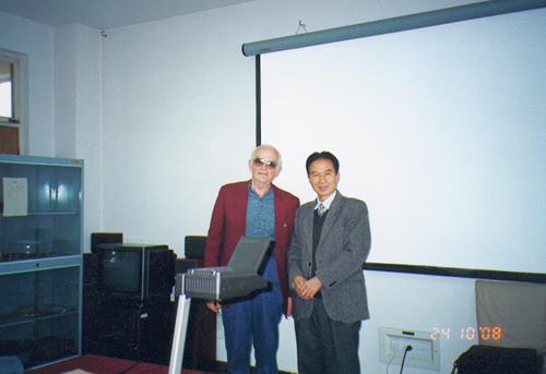 2000年姜景山和美国著名微波遥感专家摩尔教授在空间中心实验室合影