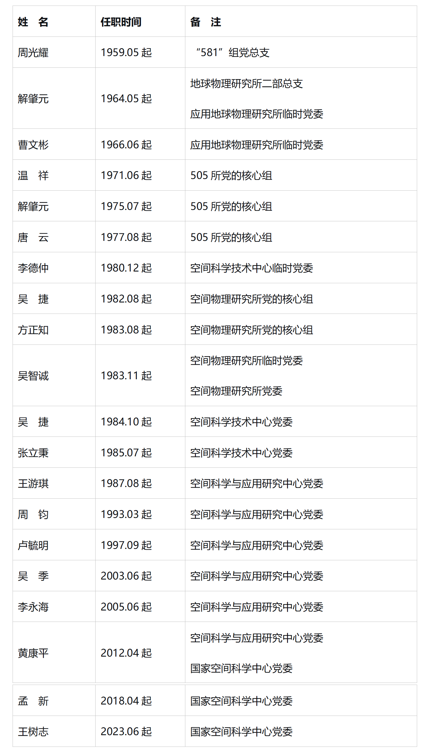 历届党委主要负责同志及任职时间: