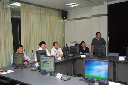 7月10日上午,中国科学院阴和俊副院长在院高技术局田静局长、董永初副局长、综合技术处周也方处长、光电空间处赵刚副处长等领导的陪同下到空间中心调研。 阴副院长一行在空间中心领导的陪同下,视察了空间科学任务仿真中心、空间碎片预警研究试验室、脉冲激光单粒子效应实验室和卫星深层充放电效应实验室,向科技人员仔细询问了相关科研项目的进展及下一步的发展举措,听取了各研究室负责人关于承担的科研工作及成果的汇报,并对他们的工作予以了肯定和表扬。 随后,阴副院长一行与空间中心领导班子成员进行了座谈。空间中心吴季主任就研究所发展现状、参与和承担的重大任务、发展规划等方面向阴副院长一行作了汇报。 阴副院长对空间中心近年来在知识创新活动中取得的工作进展和工作成绩给予了充分的肯定,同时结合空间中心工作实际提出指导性意见。阴副院长强调,空间中心目前面临良好的发展机遇,应积极争取国家有关计划,做好目前承担的各项工作,同时要着眼长远,谋划大事情,加强合作,做好总体性工作,并希望空间中心继续努力,创新发展。