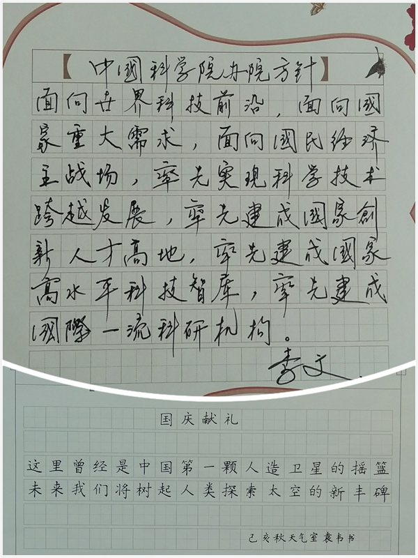 近日,由中心艺术协会主办的庆祝建国70周年和建院70周年——空间中心第二届书法比赛圆满结束。本次比赛以“科技报国七十载 创新支撑强国梦”为主题,展示了空间中心职工的立志报国之心以及对伟大祖国的热爱和祝福,彰显了中科院“创新科技、报国为民”的初心和使命,弘扬了中心创新文化和取得的科技创新成果。