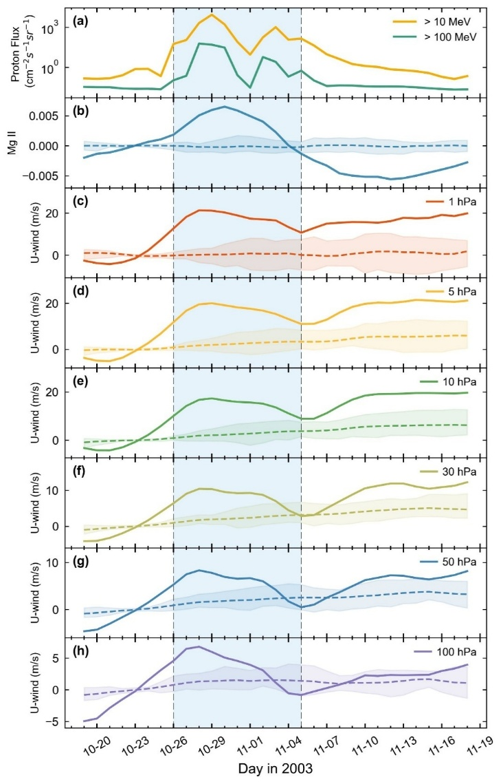 本研究系统揭示了太阳质子事件对平流层极涡影响的定量关系及其潜在作用机制,深化了我们对日地相互作用的认识,为探讨太阳活动对地球天气和气候的影响开辟了新的科学路径。相关成果已发表在本领域国际期刊JGR: Space Physics 上。