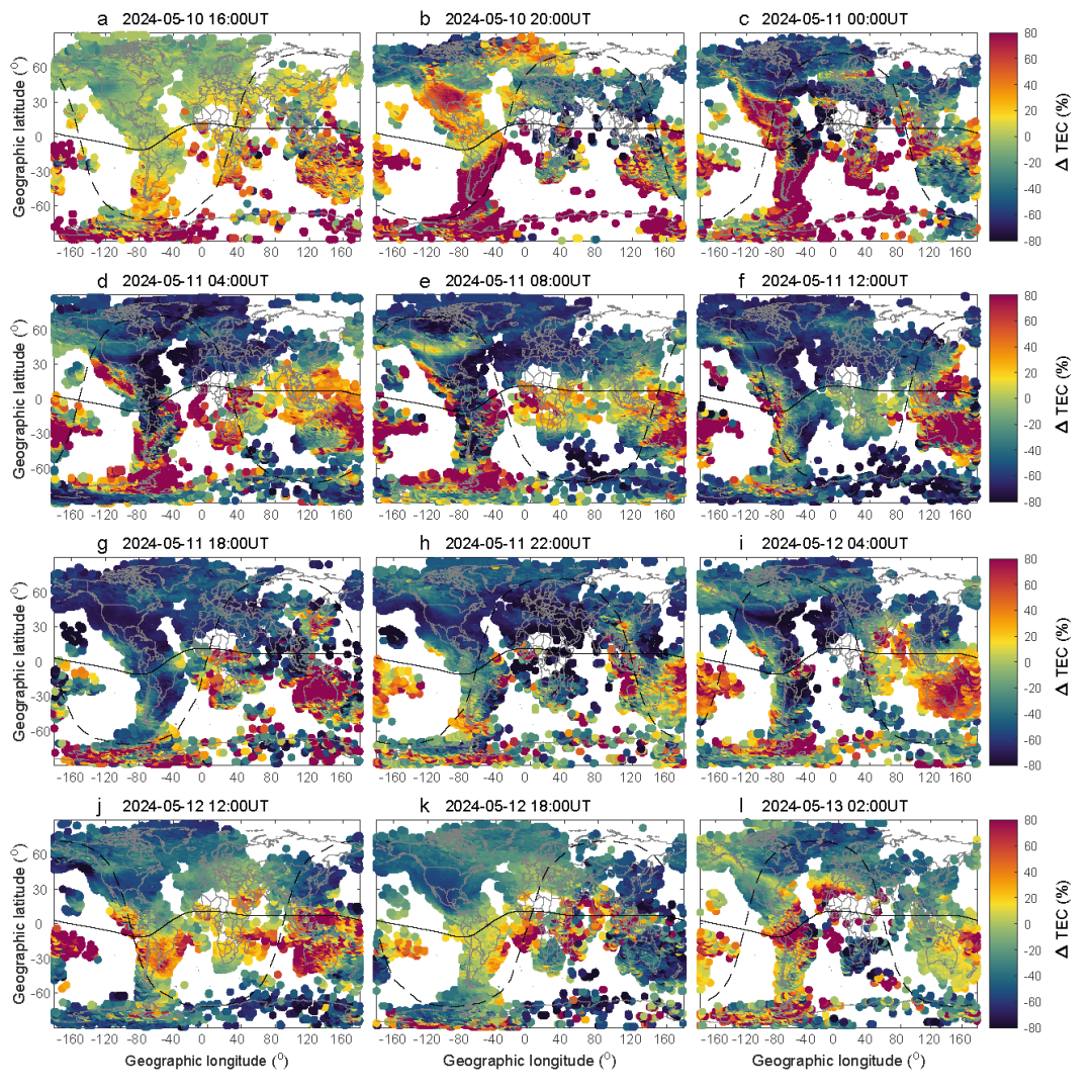 近日,中国科学院国家空间科学中心(以下简称“空间中心”)王赤院士团队在特大地磁暴期间的电离层变化及机理研究方面取得重要进展,相关成果以“The extreme depletion of ionospheric electron density and its hemispheric asymmetry during the May 2024 Storm”为题,发表在National Science Review(《国家科学评论》,NSR)。