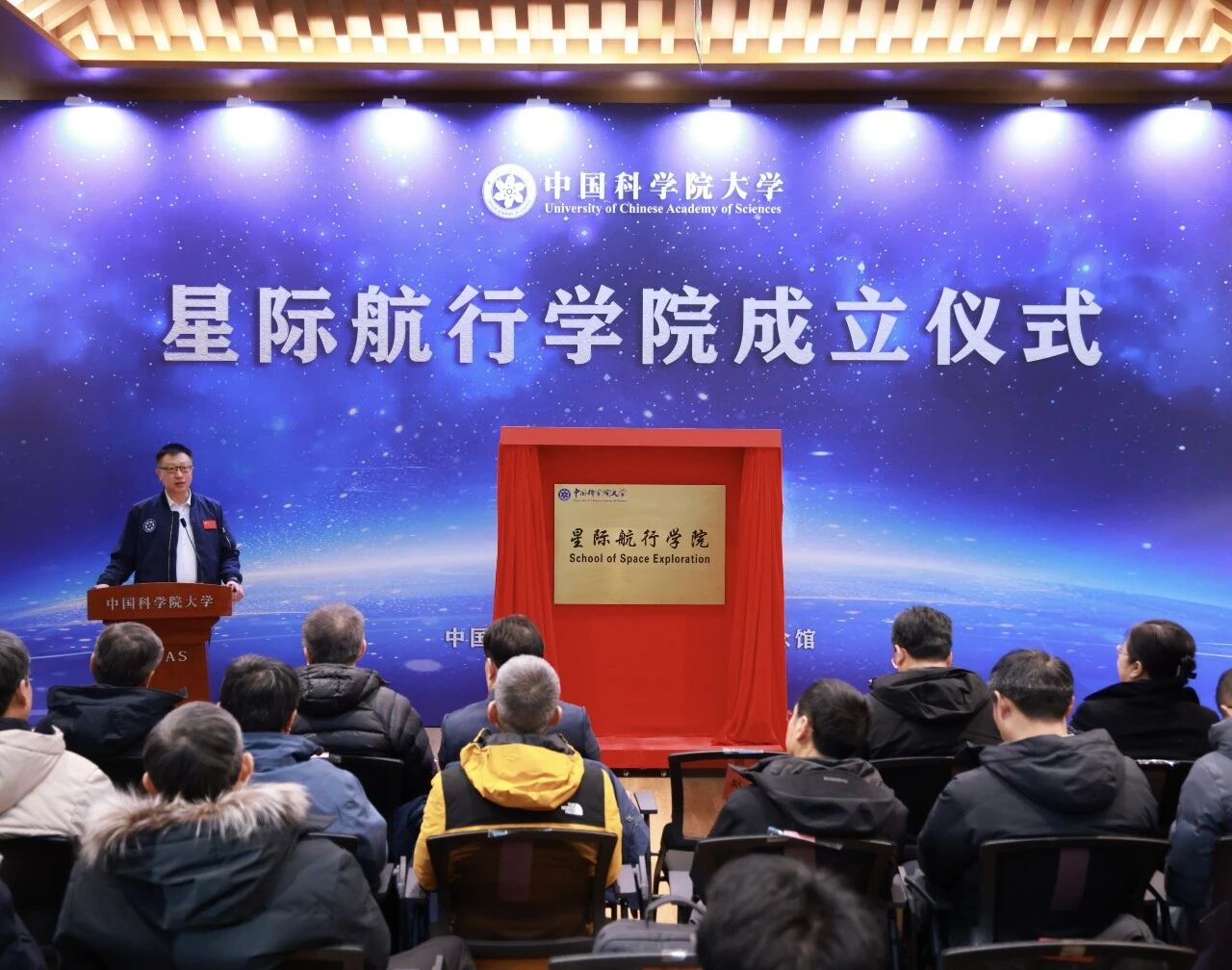 1月27日,中国科学院大学(以下简称“国科大”)星际航行学院揭牌仪式在中国科学院与“两弹一星”纪念馆隆重举行。中国科学院副院长、党组成员,国科大党委书记、校长周琪,国科大党委常务副书记、副校长王艳芬,与中国科学院工程热物理研究所研究员朱俊强院士、国家空间科学中心主任王赤院士、地质与地球物理研究所研究员郭正堂院士等20余个培养单位的领导、专家和教育管理部门负责人现场共同见证。