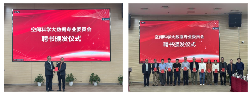 孙丽琳宣读了空间科学大数据专业委员会组成人员名单。在与会嘉宾的共同见证下,吴季、曹晋滨为专委会主任委员和副主任委员颁发聘书。