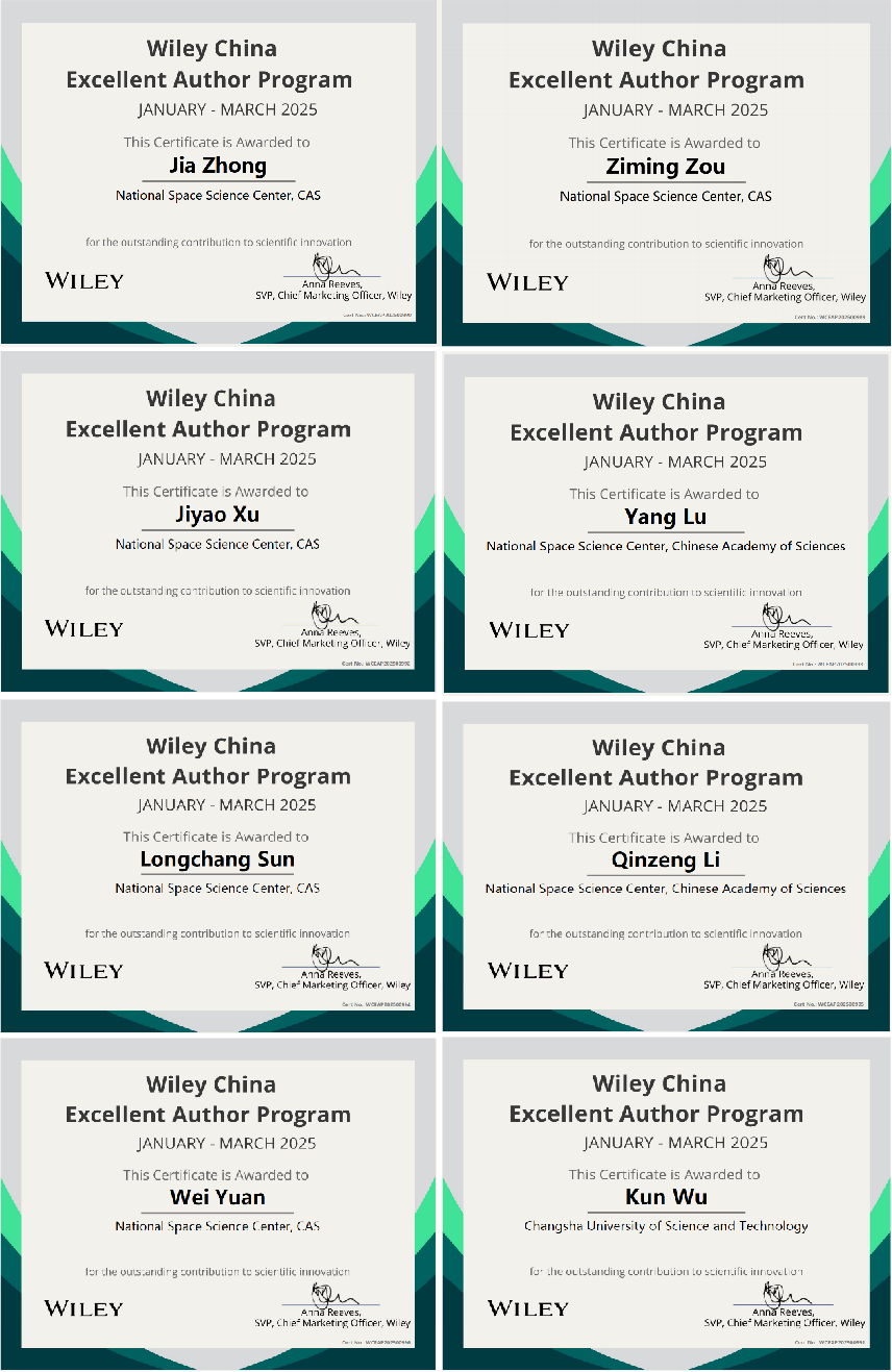 近日,中国科学院国家空间科学中心国家空间科学数据中心邹自明团队联合太阳活动与空间天气全国重点实验室徐寄遥团队及合作者,发表在约翰威立国际出版集团(John Wiley & Sons, Inc.,简称Wiley)出版期刊Space Weather 中的论文“Automatic Detection and Feature Extraction of Equatorial Plasma Bubbles From All‐Sky Airglow Image Based on Machine Learning”受到广泛关注,作者团队被授予2025年第一季度“Wiley威立中国高贡献作者”荣誉称号。